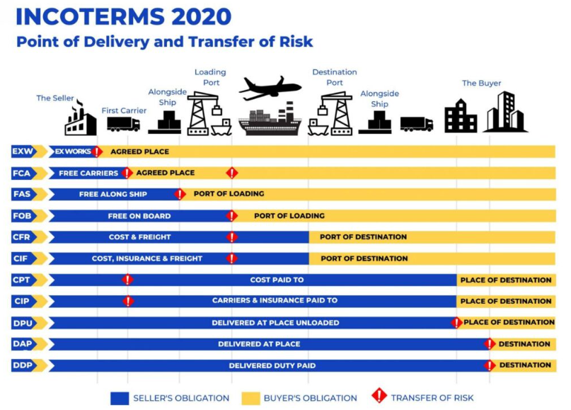 Os Incoterms 2020® são um conjunto de regras comerciais internacionais, publicadas pela Câmara de Comércio Internacional (CCI). São utilizados em contratos internacionais e nacionais, ilustrando as responsabilidades entre compradores e vendedores, relativamente a custos, riscos, responsabilidade do seguro da carga e conformidade regulamentar.